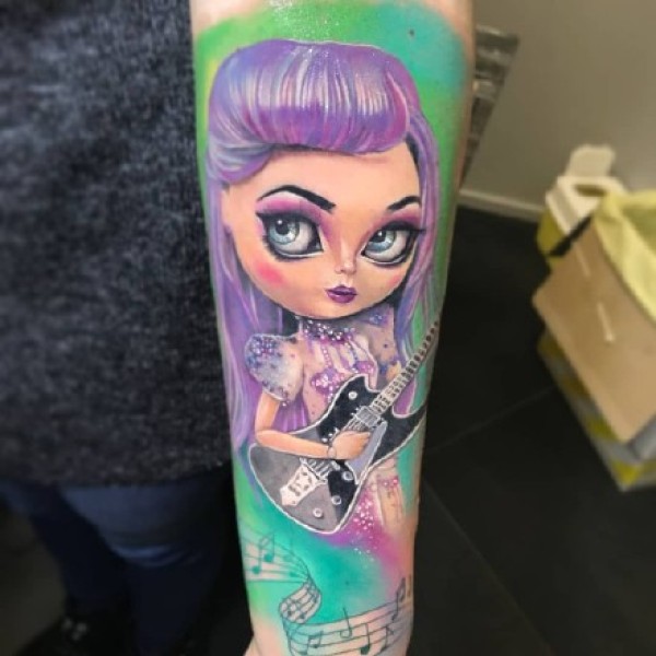 芭比娃娃主题的一组布娃娃纹身图案