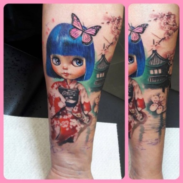 眼睛流血眼神幽怨的鬼娃娃纹身