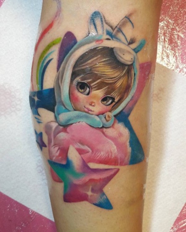 眼睛流血眼神幽怨的鬼娃娃纹身