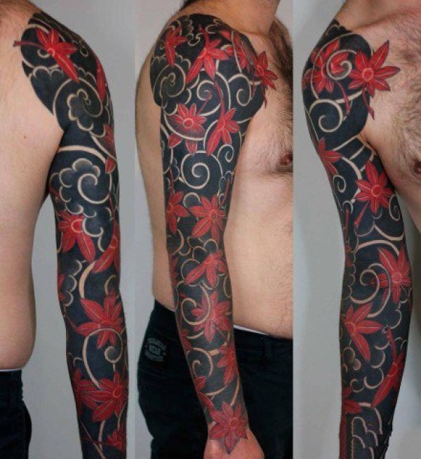 传统风格的一组男性花臂和花腿纹身图案欣赏