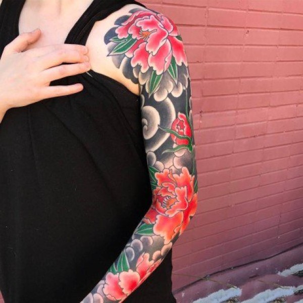 欧美花臂纹身_22张霸气黑灰欧美大黑花臂纹身图案作品图片