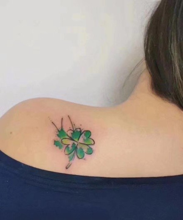 肩花纹身--一组适合肩部的黑灰肩花纹身图案欣赏