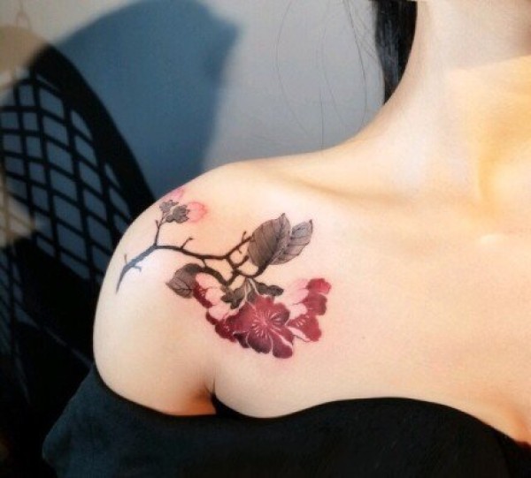 肩花纹身--一组适合肩部的黑灰肩花纹身图案欣赏
