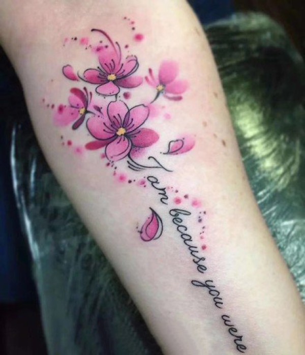 纹在手臂胳膊上的黑灰素花花卉纹身图案欣赏