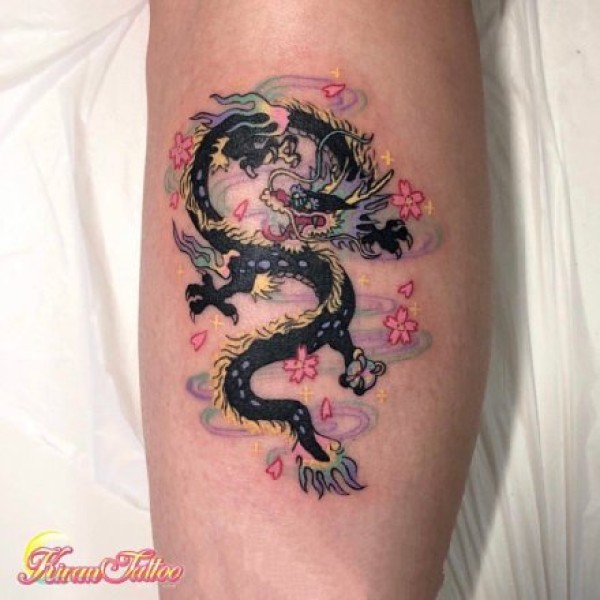 小腿部中国古代神兽龙纹身_龙纹身图案大全_纹身图吧