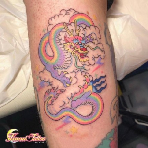 小腿部中国古代神兽龙纹身_龙纹身图案大全_纹身图吧