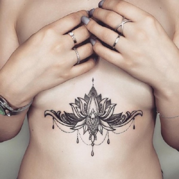 女性胸下性感的一组梵花纹身作品图片欣赏