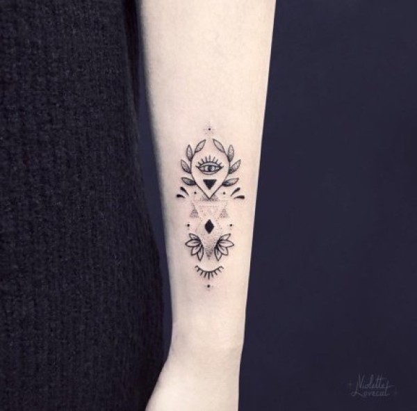 小臂上很有创意的小清新点刺纹身图案