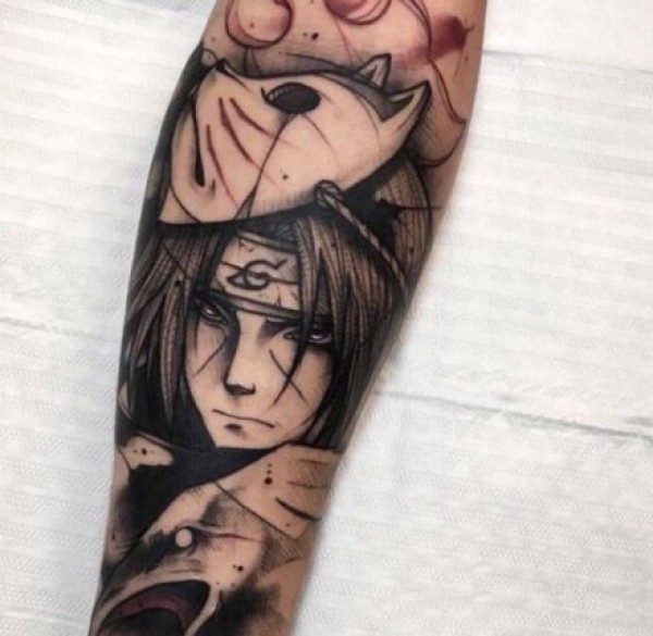 火影忍者纹身 男生手臂上面具和卡通人物纹身图片