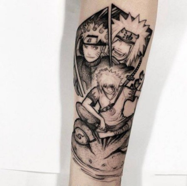 手臂上的火影忍者鸣人佐助卡卡西等角色动漫纹身图案