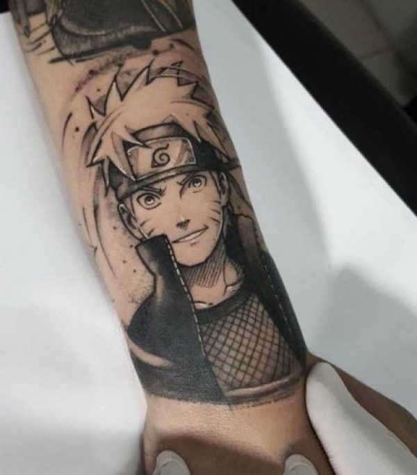 手臂上的火影忍者鸣人佐助卡卡西等角色动漫纹身图案