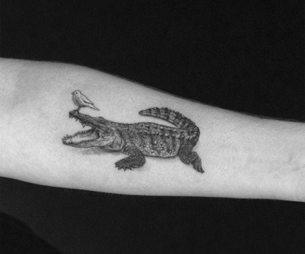 鳄鱼纹身图案 多款黑灰纹身点刺技巧鳄鱼纹身图案