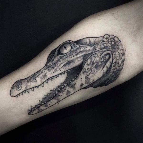 鳄鱼纹身图案 多款黑灰纹身点刺技巧鳄鱼纹身图案