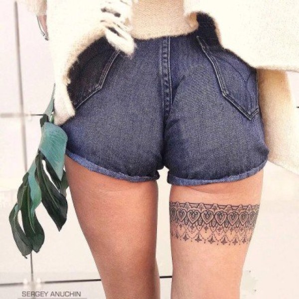 女生的黑灰色梵花性感纹身图案