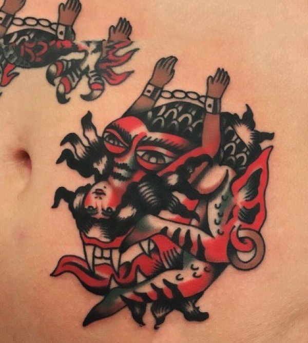 欧美oldschool风格的红色纹身图