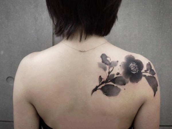 女生肩花纹身_15张女性双肩对称的肩花纹身图案作品图片