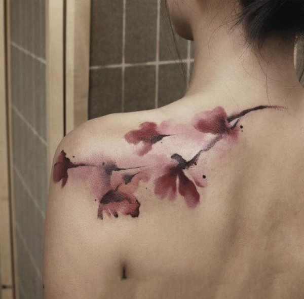 女生肩花纹身_15张女性双肩对称的肩花纹身图案作品图片