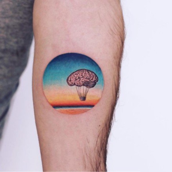 圆形风景纹身 小臂上的一组圆图形里的小风景纹身图案