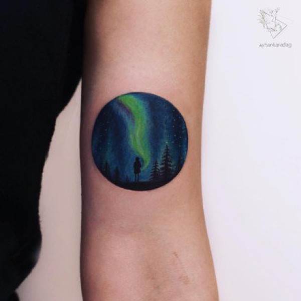 18款手臂上各种美妙的小圆形风景纹身图案