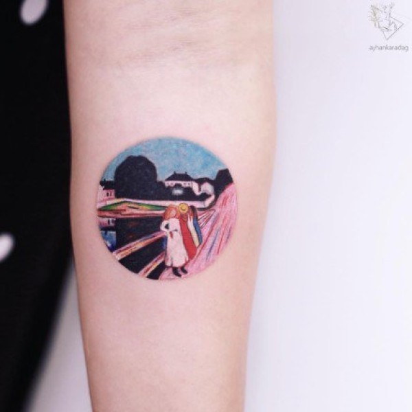 圆形风景纹身 小臂上的一组圆图形里的小风景纹身图案