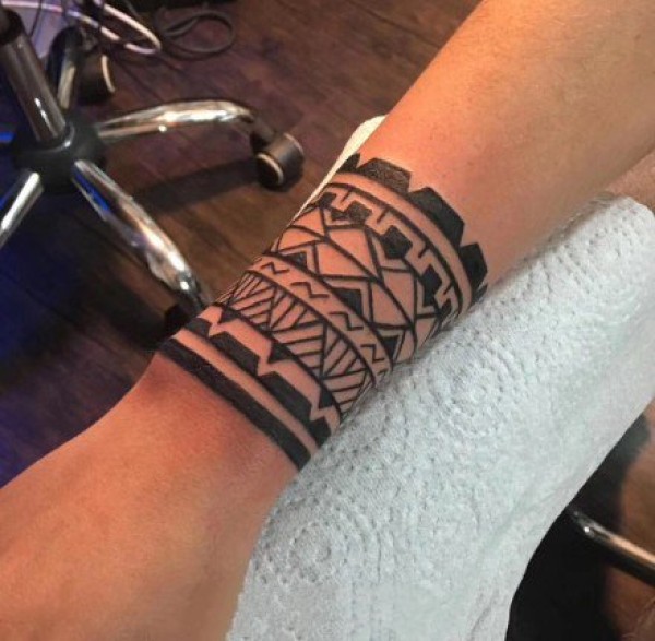 小臂手腕处很有民族风情的手环臂环纹身图案