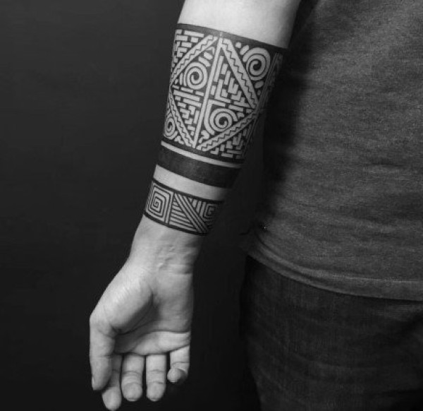 小臂手腕处很有民族风情的手环臂环纹身图案