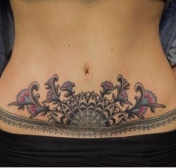 女性腰部莲花花纹刺青_腰部纹身图案大全_纹身图吧