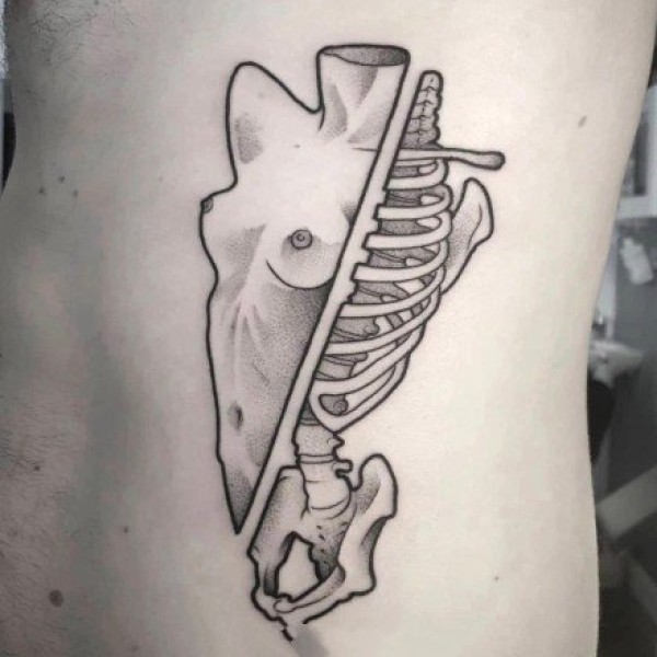 侧腰女骷髅刺青图案图片_骷髅纹身图案大全_纹身图吧