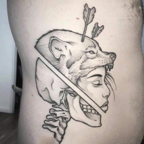 侧腰女骷髅刺青图案图片_骷髅纹身图案大全_纹身图吧