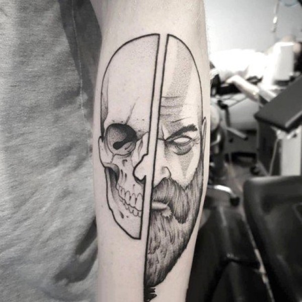 创意的半身体半骷髅风格的9张纹身图案