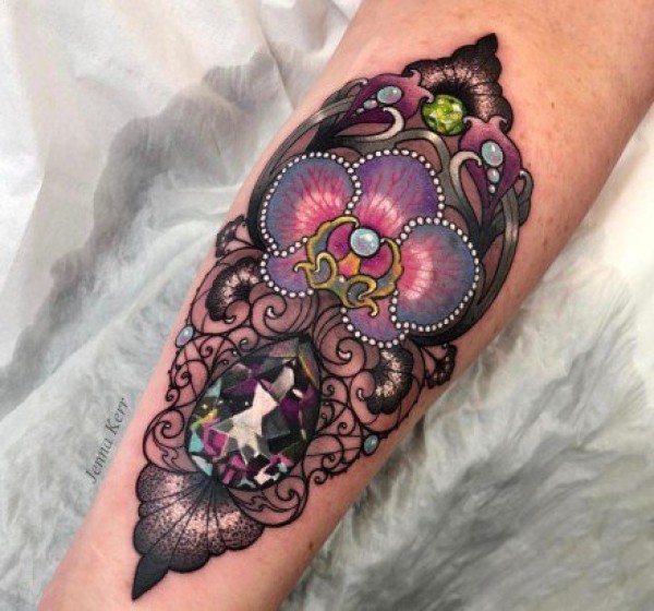漂亮宝石来点缀的装饰风格黑色点刺纹身图案