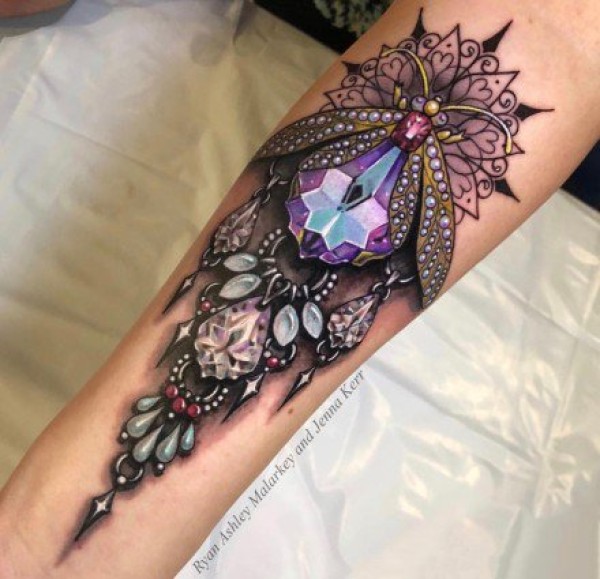 漂亮宝石来点缀的装饰风格黑色点刺纹身图案