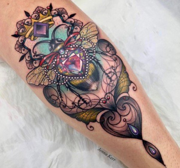 18组炫彩色的宝石钻石纹身图案