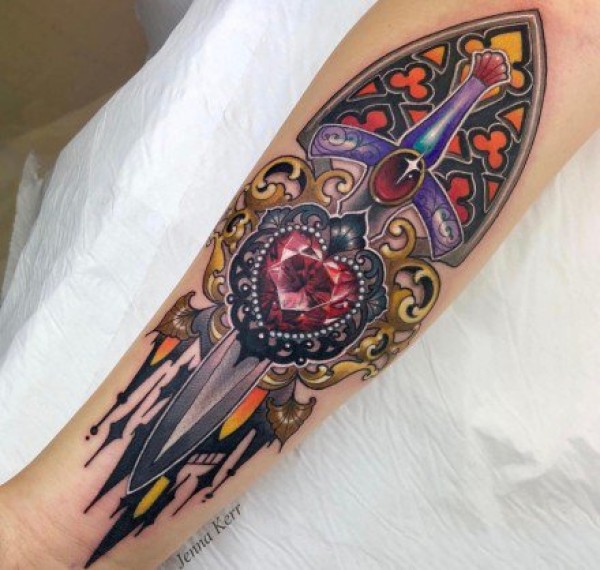 18组炫彩色的宝石钻石纹身图案