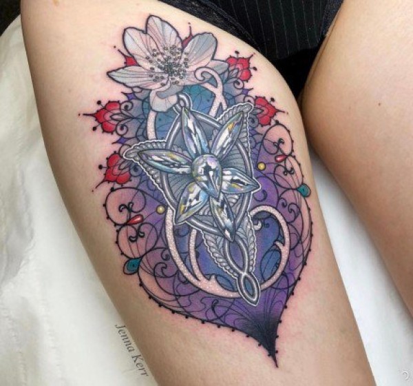 女生身上很性感的宝石蕾丝链纹身图案欣赏