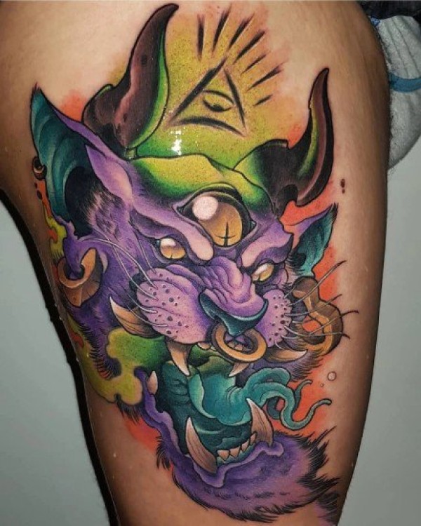 日本彩色新传统传奇人物纹身动物图案纹身 by Yushi Tattoo