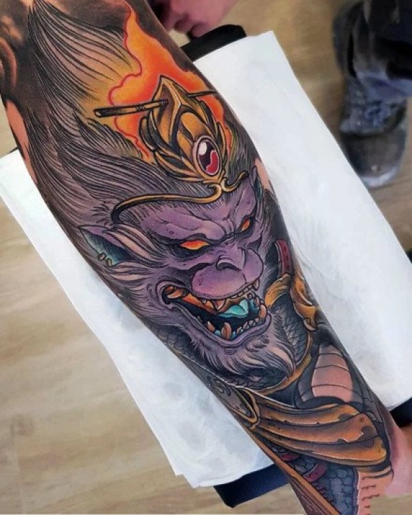 日本彩色新传统传奇人物纹身动物图案纹身 by Yushi Tattoo