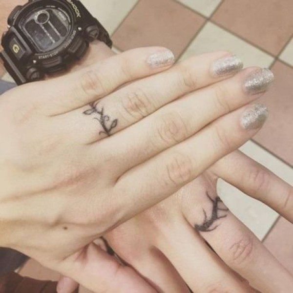 多款文艺小清新寓意十足的情侣闺蜜手指上对戒纹身图案