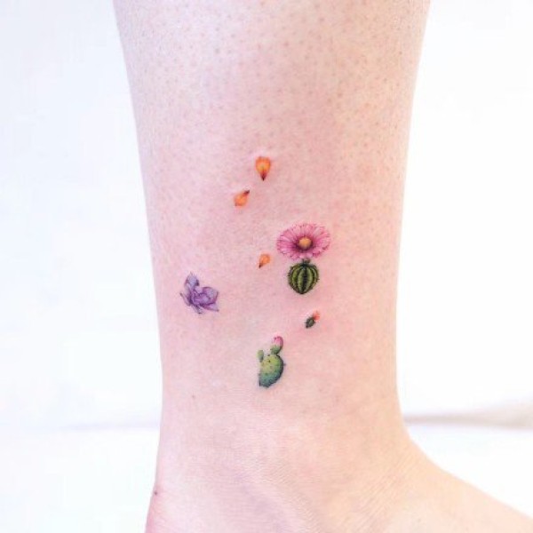 晳白的脚背配上小花瓣纹身刺青很迷人