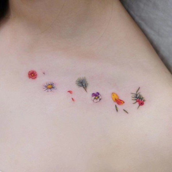 晳白的脚背配上小花瓣纹身刺青很迷人
