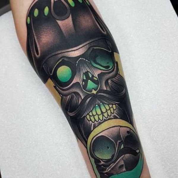 霸气侧露的包大臂骷髅纹身图案