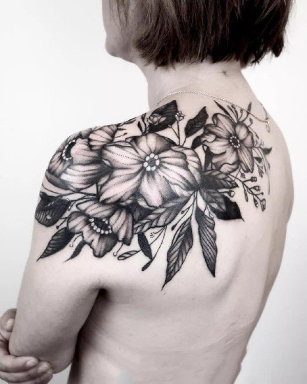后肩唯美花藤英文图案图片_植物纹身图案大全_纹身图吧