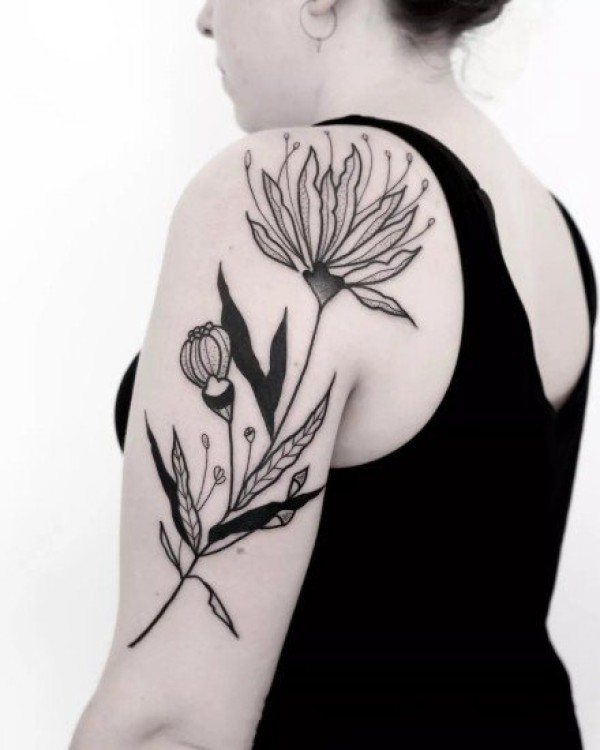 草图感向日葵纹身图案_植物纹身图案大全_纹身图吧