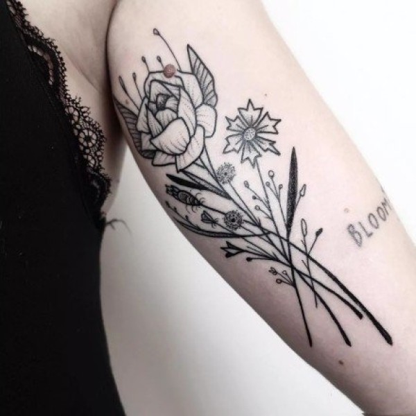 欧美玫瑰纹身 男生手臂上花朵纹身图片