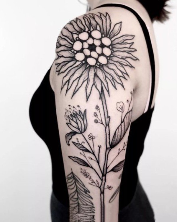 草图感向日葵纹身图案_植物纹身图案大全_纹身图吧