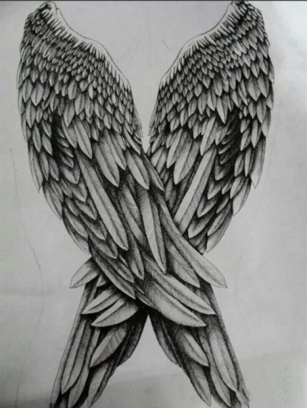 霸气翅膀:适合男性的一组霸气翅膀纹身图案9张