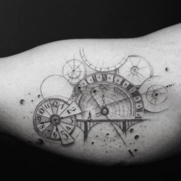 钟表纹身图案 10组多款黑灰色的创意钟表纹身图案