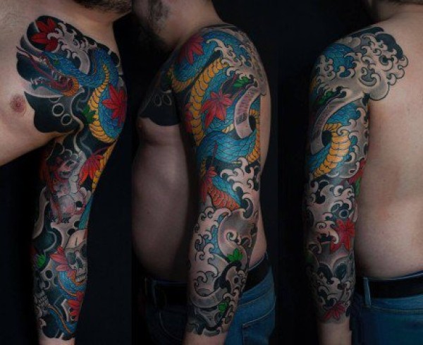 日式手彫刺青作品—半甲龙很感谢客户认可手彫刺青,手彫是日本纹身的手工雕刻技术,时间可以追溯到日本17世纪的江户时代。19世纪,手彫技术被日本黑帮挪用,被用作入会仪式,象征着从此就是江湖中人。在日式传统