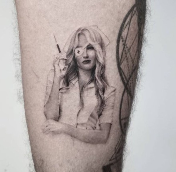 花腿纹身--一组大黑腿纹身图案作品欣赏