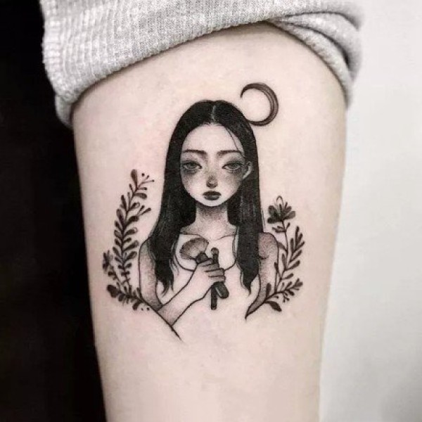 27张可爱美丽的卡通小女孩--纹身师rikkiiies的纹身图案作品